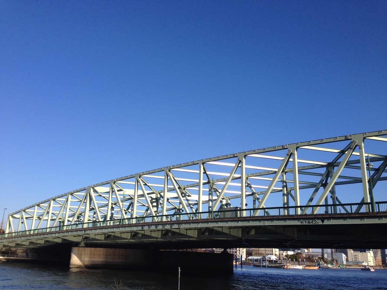 石川島と越中島を結ぶこの橋を見ると 子供時代あやとりで作った橋を思い出す、ザ橋な形状。