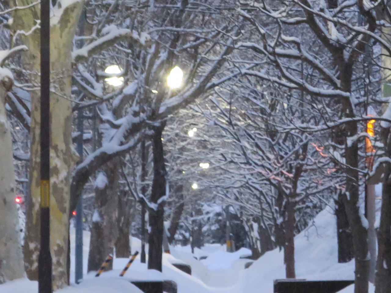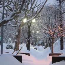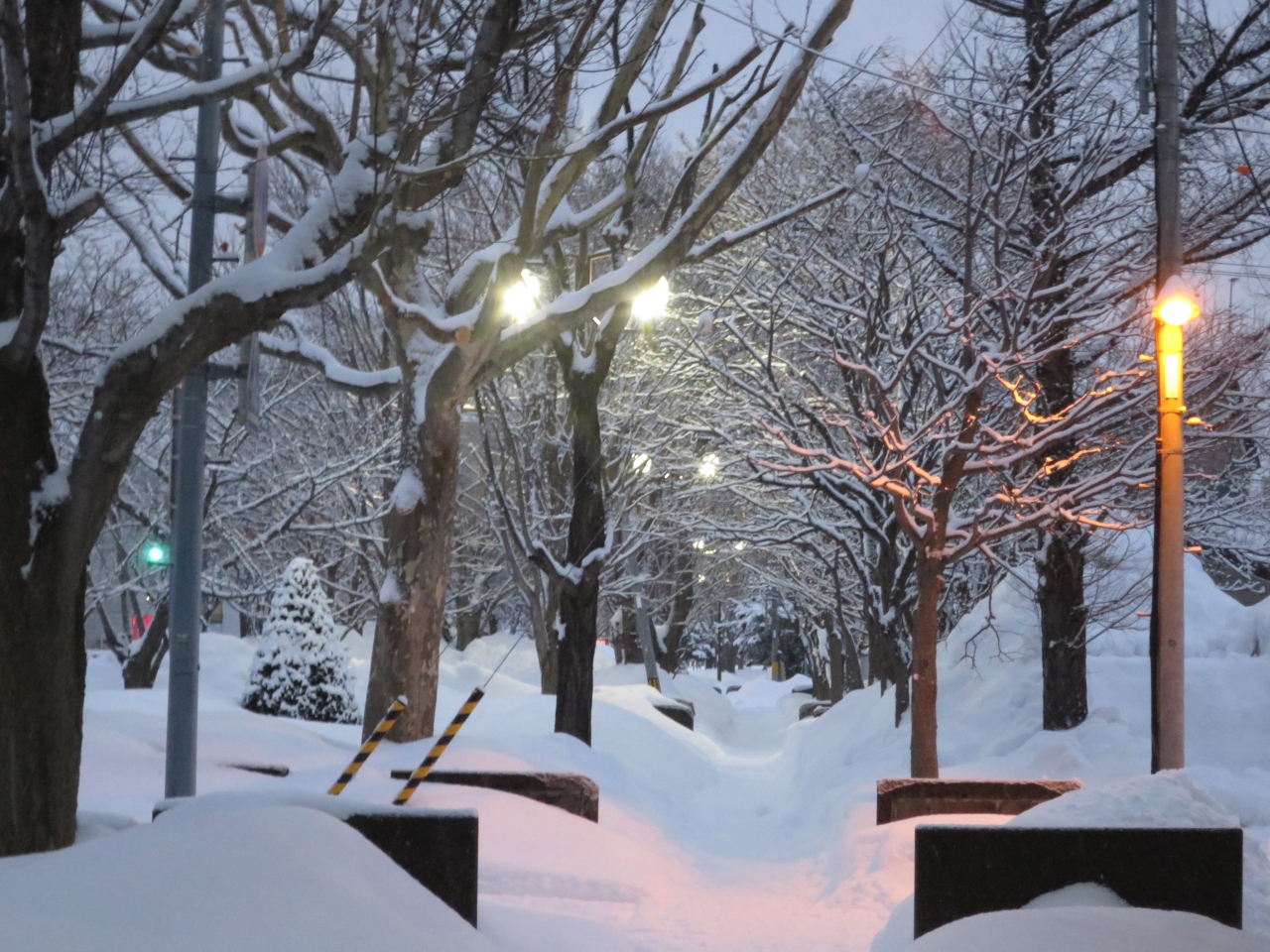 札幌の街中、道路が2倍の広さあって、半分が緑地帯になったような公園です。