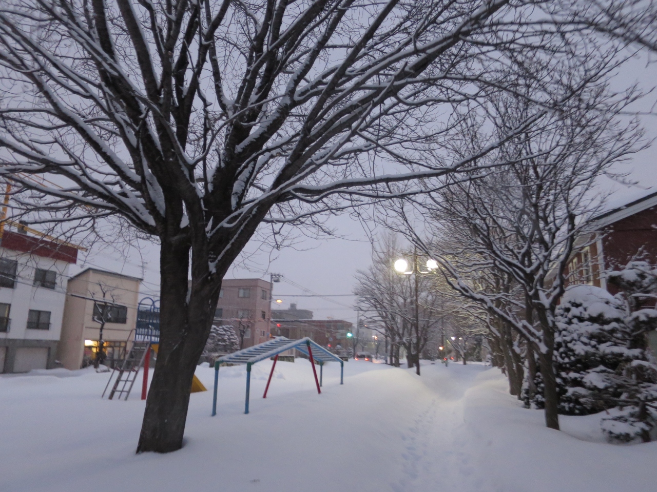 最後の北26条さくら公園には、古いですが公衆トイレがあり、冬でも開設していました(札幌市内の公園にある公衆トイレは、冬は閉鎖されている場合が多い)。