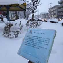 あずまやにベンチなど、休憩できる場所がところどころにありますが、冬はいずれも雪に埋まっていました。