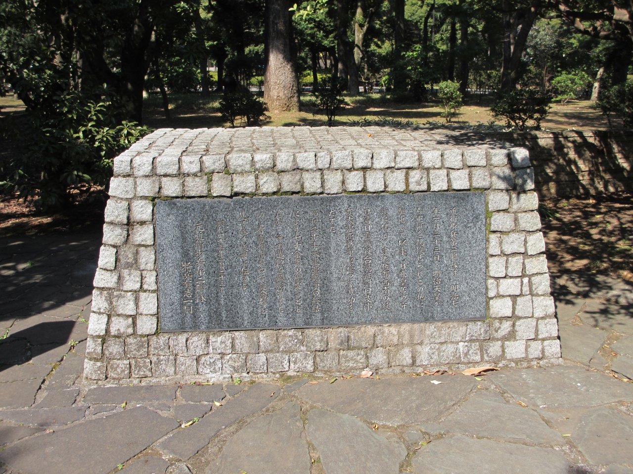 九段下駅から徒歩7分です。北の丸公園内、科学技術館近くにある気象台の北の丸公園露場の隣りにあります。近衛歩兵第二聯隊は明治7年(1874年)日本陸軍最初の歩兵聯隊として創設され、昭和20年まで70年余りこの地に駐屯して日夜皇居を守護してました。公園内休憩所裏に第一聯隊の記念碑があります。