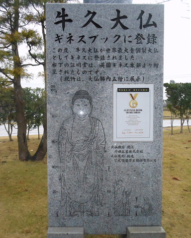 牛久大仏はブロンズ(青銅)製大仏立像で、全高120m(像高100m、台座20m)あり、立像の高さは世界で3番目だが、ブロンズ立像としては世界最大だそうです。