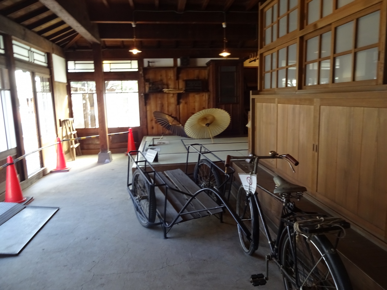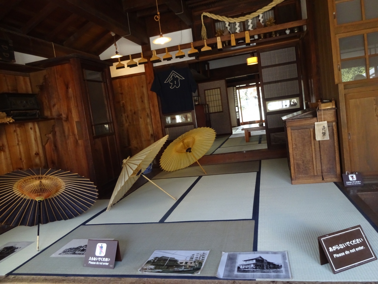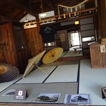 昭和の5年ごろの内部を再現していて、和傘が展示されているのも興味深いです。