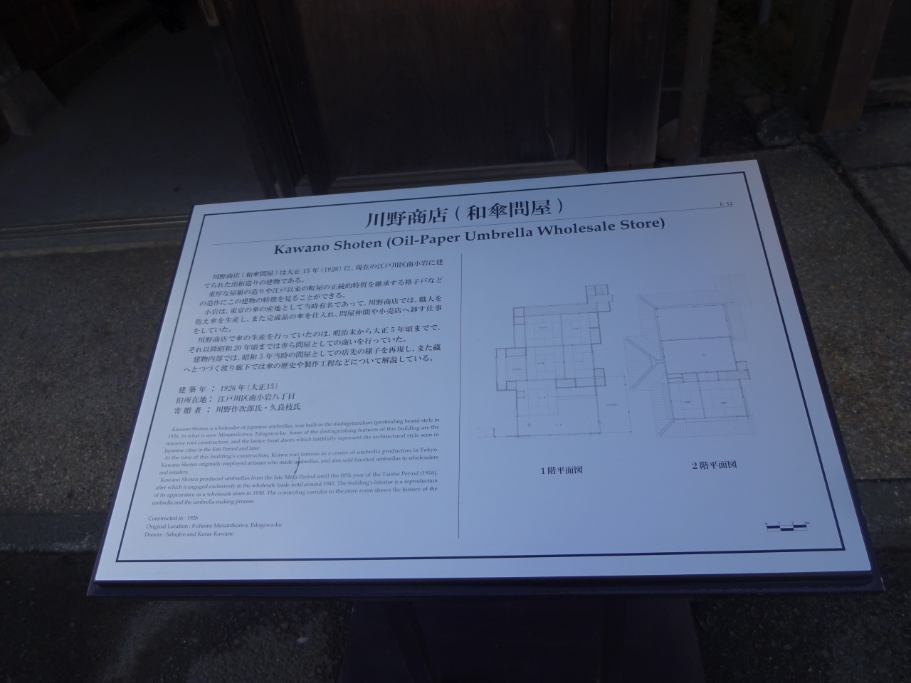 江戸川区にあった和傘の問屋の建物がここ江戸東京たてもの園に移築、保存されています。