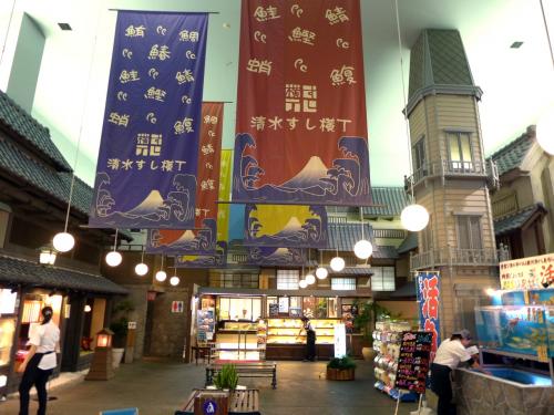 東名高速道路清水インターチェンジから約5km 渋滞無しで15分ほどの清水港近くに建つ複合商業施設エスパルスドリームプラザに清水すし横丁があります。