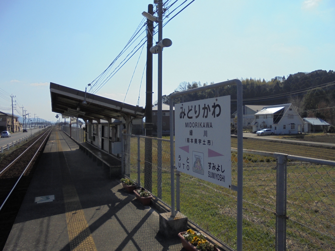 熊本県宇土市にあるJR九州の三角線の駅です。駅は無人で、トイレなどなくて、時刻表、ベンチくらいで後は何もありません。近くには、緑川小学校、郵便局、粟島神社があります。国道57号線沿いにはバス停もありました。運航している本数も少ないです。