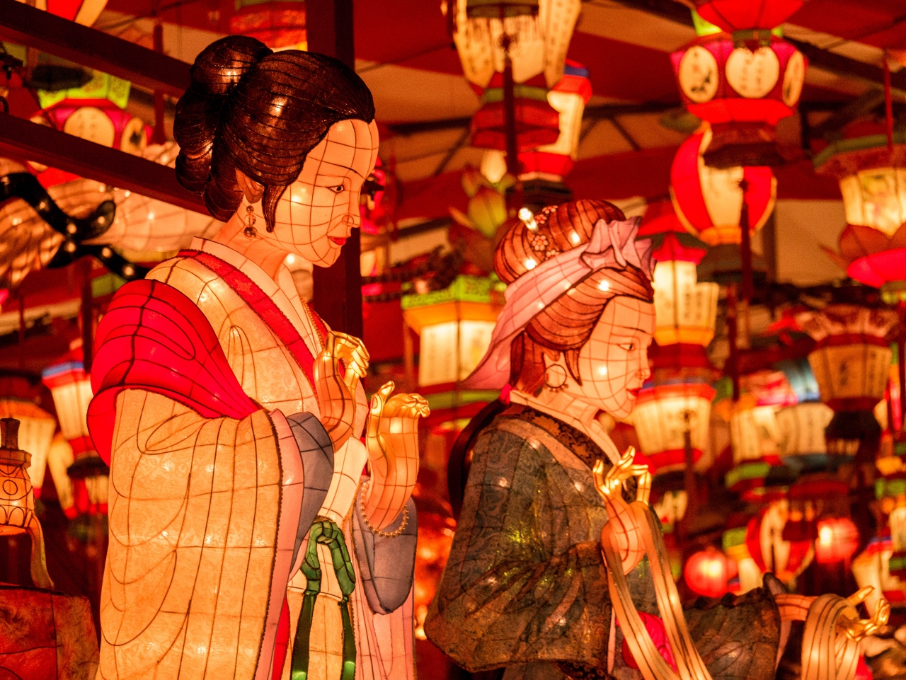 長崎新地中華街をはじめ、湊公園、中央公園、眼鏡橋周辺、浜市・観光通りアーケードなど長崎市内の中心部に、約15,000個にも及ぶ極彩色のランタンや、幻想的なオブジェが飾られ、街を彩ります。