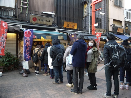 浅草伝法院通り沿いに有る「浅草メンチ」、店は大変小さくイートスペースも有りませんので、みんな路上で立ち食い状態これがまた浅草らしくて良いのかも知れません。ここは何時行って行列が出来るほどの人気店です。メンチは200円しっかりした食感は本当に美味しいです、小腹が空いた時は是非食べてみて下さい。