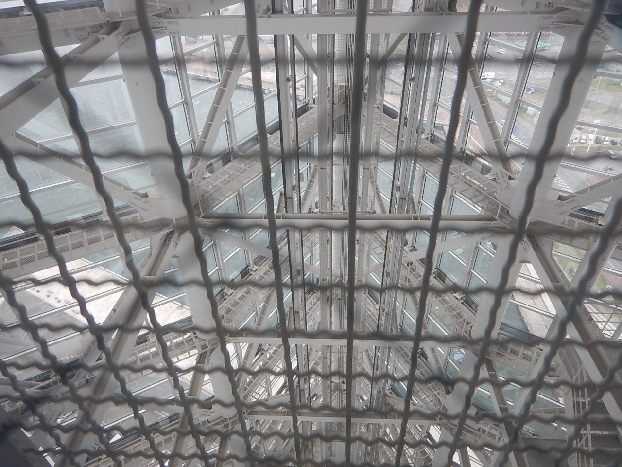 展望台には無料で入る事ができ、シースルーのエレベーターで昇る。