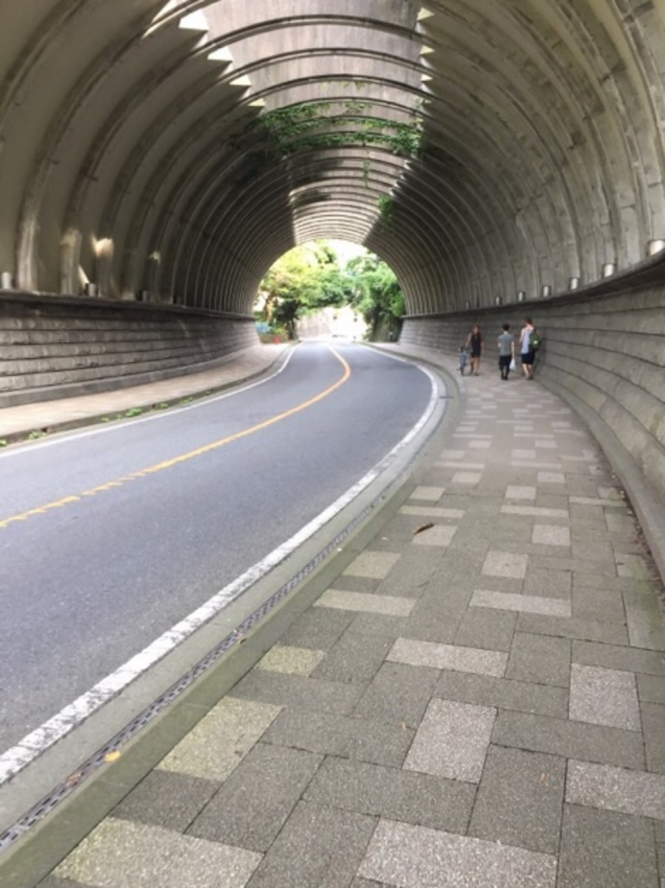 北鎌倉から鎌倉駅へ移動する際に通る坂で、トンネルもあり、独特の雰囲気があります。