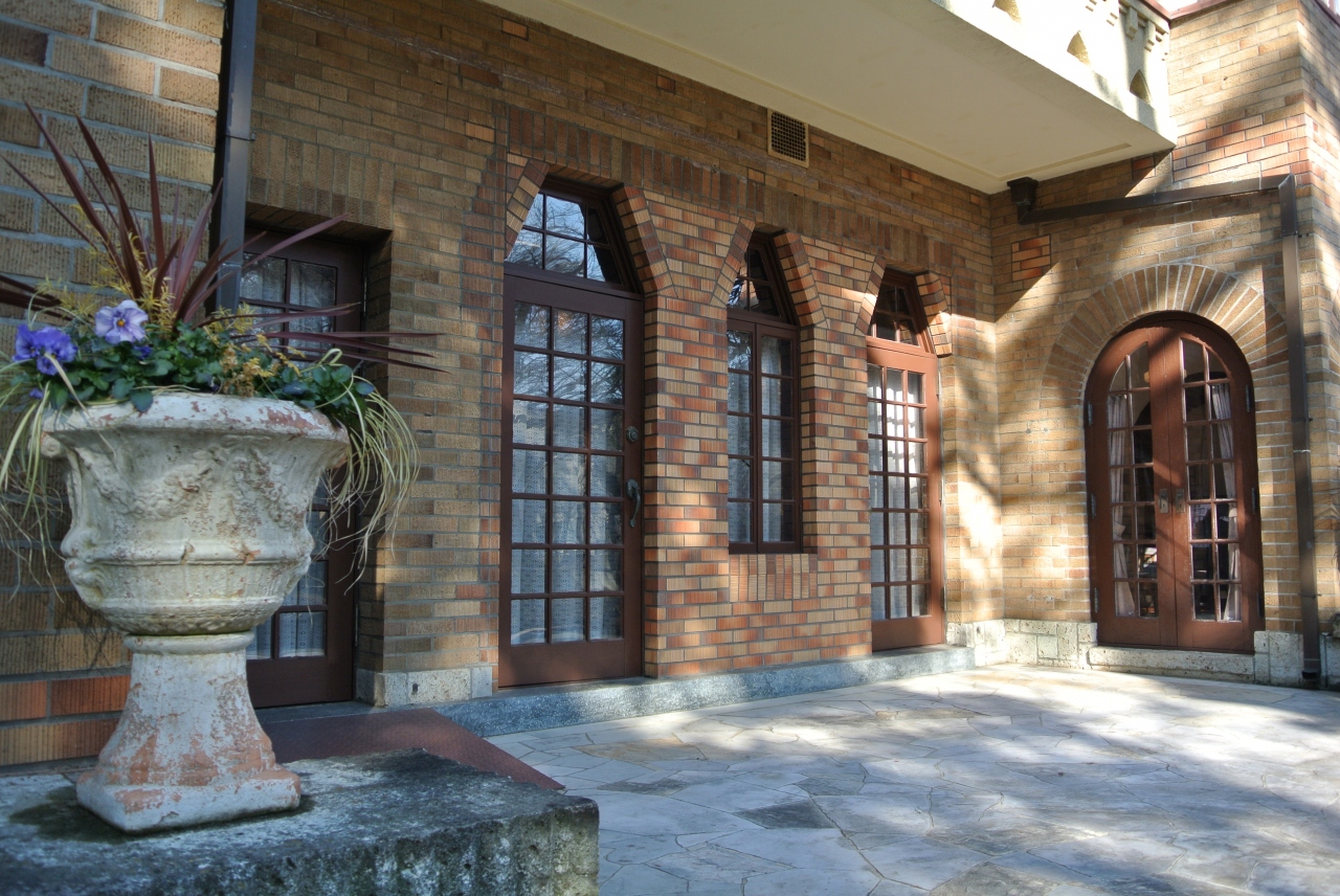 窓枠や扉の蝶番などのデザインも素敵な建物でした。