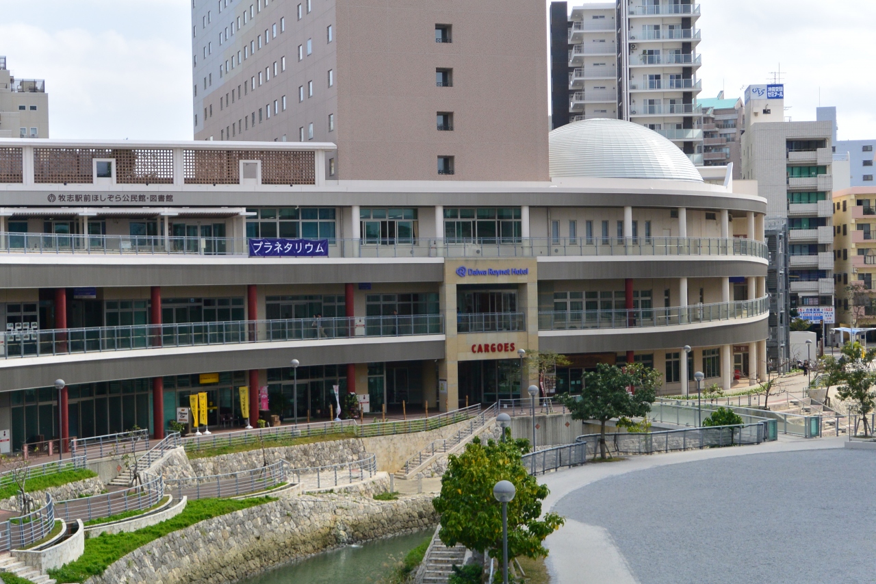牧志駅を降りた後、地上に降りることなく、そのままペデストリアンデッキを歩いて行ける商業施設です。