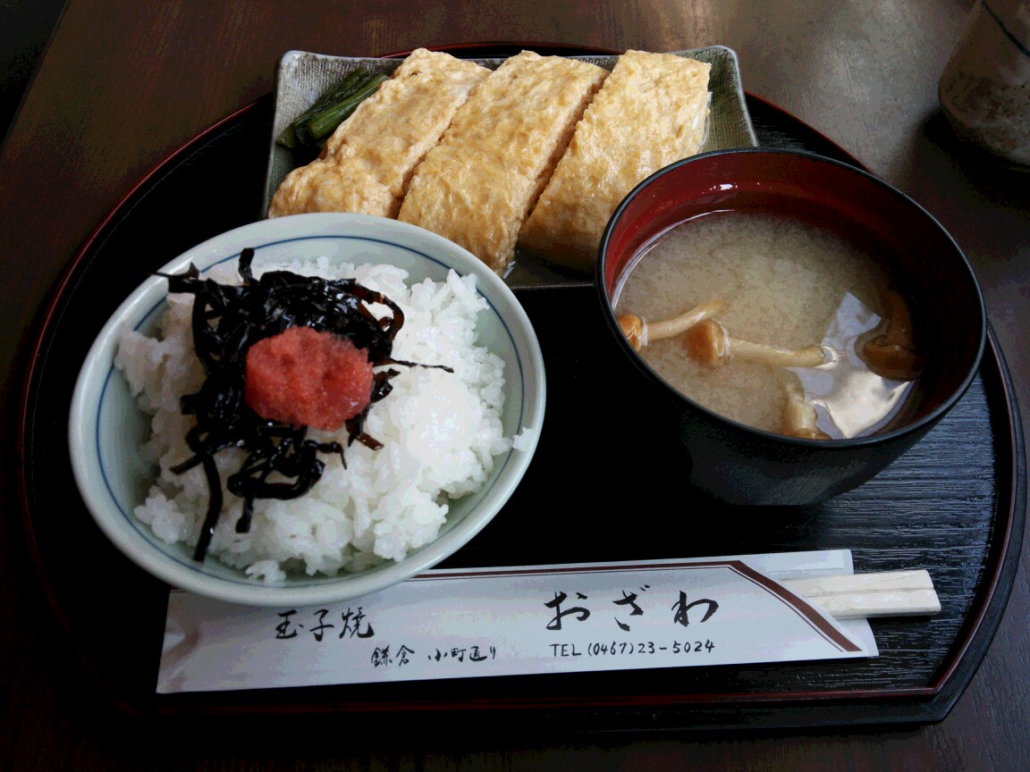 鎌倉駅を降りて小町通へと進み、一本路地裏へと入ったところにあります。わかりにくいお店ですが、お店の前に行列ができているのですぐにわかりました。お店の名前の通り、玉子焼きの専門店になります。店内は11席しかなく、常に行列がある感じでした。注文したのは玉子焼き膳。玉子焼きに1000円以上かけて食べるなんて初めての経験でした。口に入れると出汁をたっぷり使ったふわふわの触感が至福でした。ただ、男性が食べるにはちょっと量が少ないと思います。玉子焼き膳の他には、とりそぼろ膳などもありました。