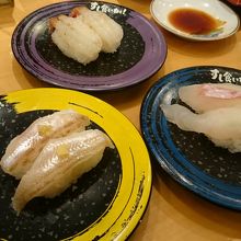 松任に本店があり、石川県と富山県にお店を持つ回転寿司チェーン店。石川県庁の前にあり、第一駐車場と第二駐車場があります。カウンター席中心に、テーブル席と小上がりがあります。金沢港、氷見港直送の新鮮な魚を使っており、ネタが回転寿司レベルを遥かに超えています。シャリがあまり大きくないので、色々な種類も食べられます。まずは北陸厳選盛り合わせを注文。白えびやへしこ、能登のいかなど。6艦も入って1000円は安い。ちなみに白えび2艦て720円なのでかなりお得。ながらめ、ほうぼう、なめら八目、がすえび、はたはた、ぶりの砂ずりなど、北陸だからこそ提供できるメニューがいっぱいで、しかも朝〆のものも多く、新鮮。また、そのお魚を使ったあら汁は、出汁がこれでもかというくらい出ていて最高。絶対に頼みたい一品です。東京にもこんな回転寿司屋さんがあったら流行ると思います。また行きたいです。