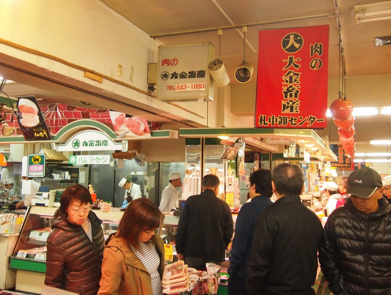 さっぽろ場外市場の敷地にある中卸センターでひときは活気のある人だかりがあるお店が大金畜産 札中卸センター店です。基本は豚肉や鶏肉を扱うお店ですがこれらを使ったお惣菜が人気の様です。定番のメンチ・コロッケから焼き鳥、カレーパンまでありました。