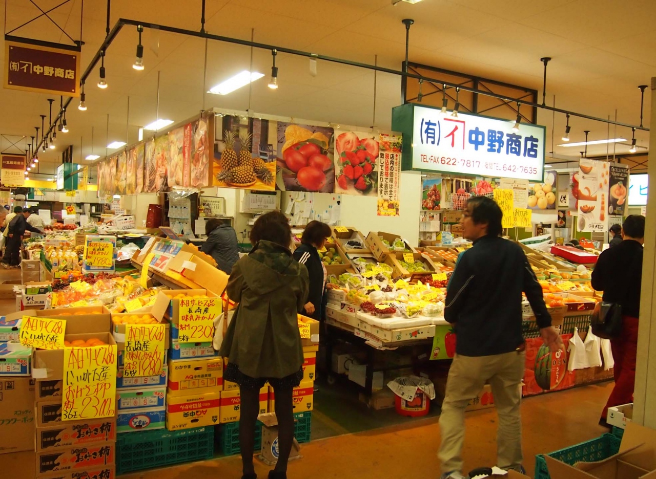 さっぽろ場外市場の入り口付近にあるビルの一階に広がる地元の野菜・果物が豊富に並んだ商店街です。観光で来ているので野菜などはあまり買う事が出来ませんが店舗の中には干物屋さんやお弁当屋さんも入っています。