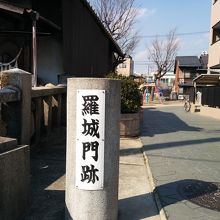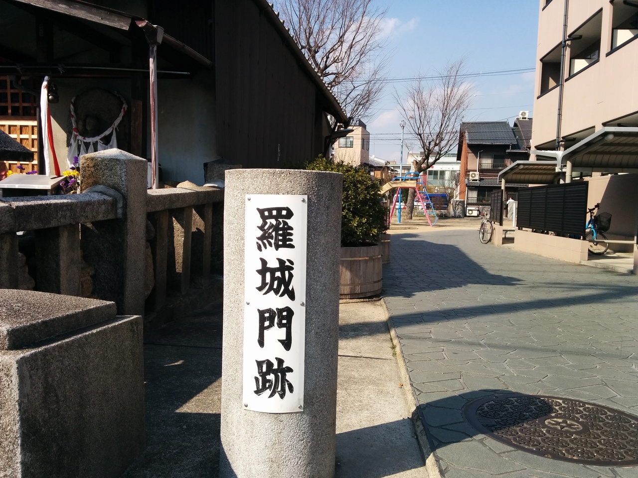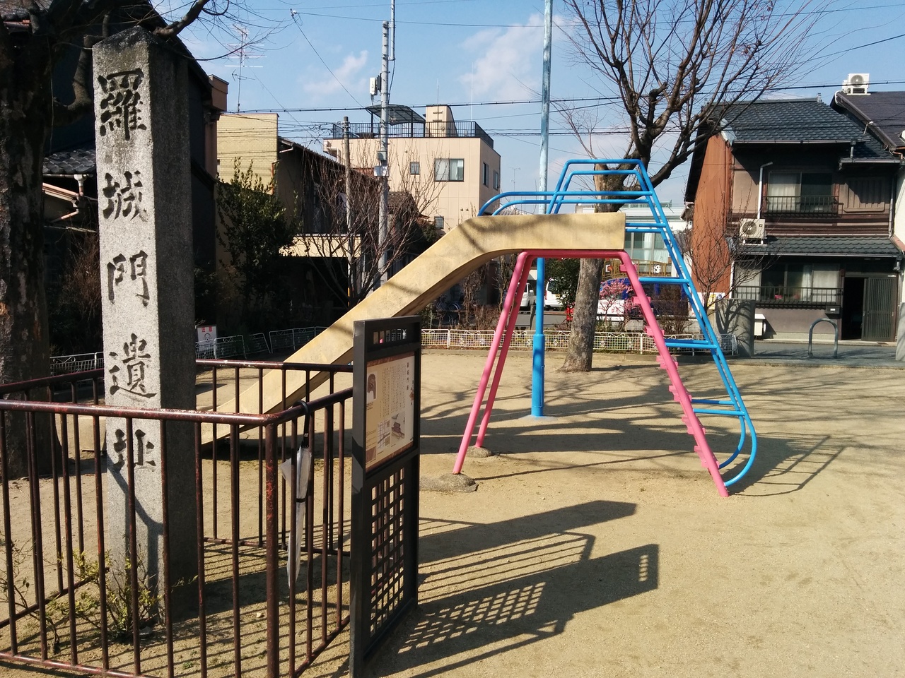 その公園に入る正面左手の石柱に「羅城門跡」と表示されていました。