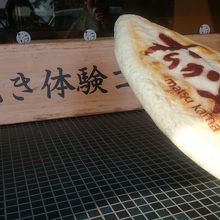 笹かまぼこの手焼き体験ができます。(1本¥200)