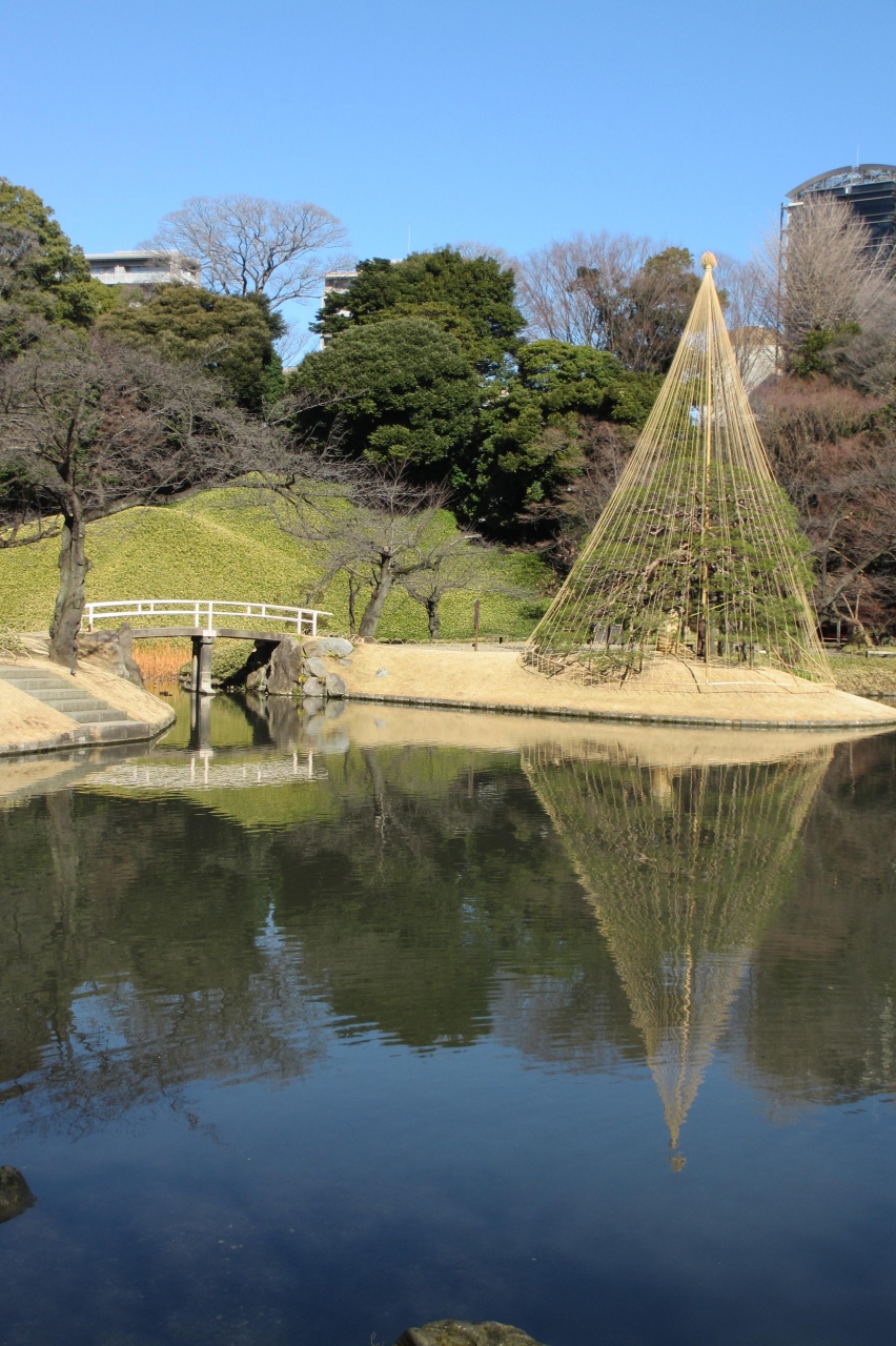 蓬莱島の近くに一つ松があります。2月は雪吊りがしてありました。