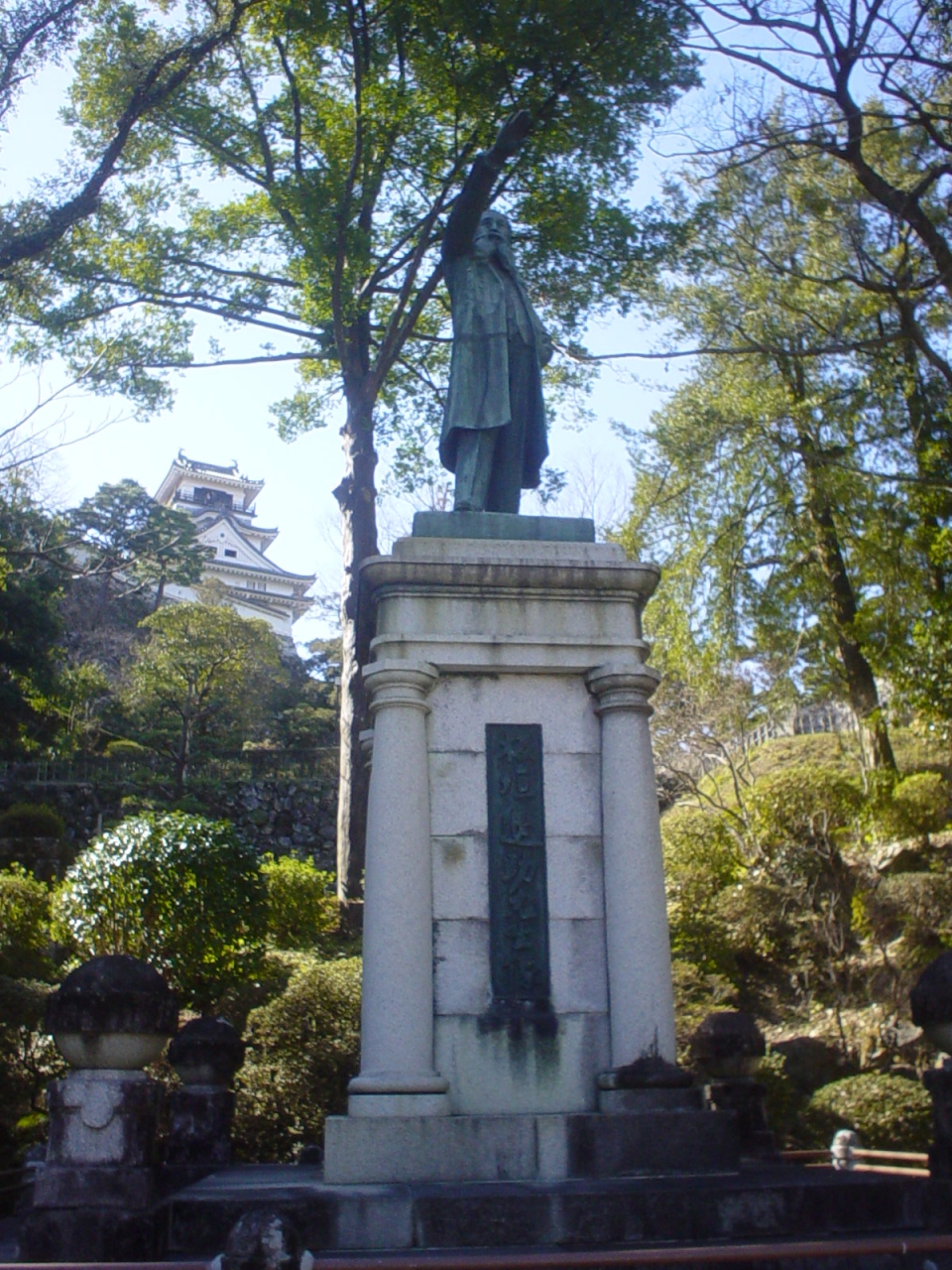 高知城の登城の最初に板垣退助さんが出迎えてくれます。実に威厳があります。