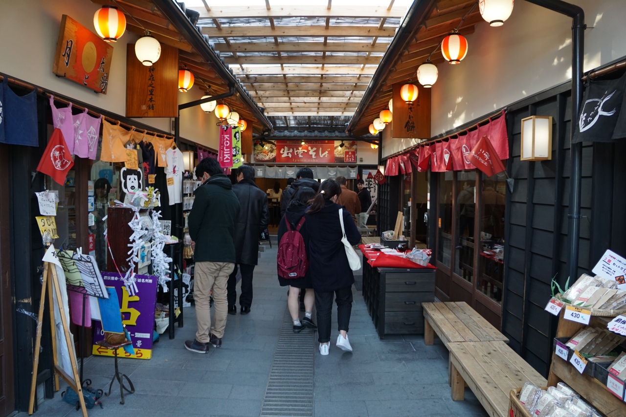 ぜんざい餅に寄っただけのつもりだったのですが、気が付くとこの一角はいずもそばや焼き鯖寿司のお店など、楽しげなお店が軒を並べる一角。横丁という名前の通り、ギュッと集積された感じがあって、この辺りでは異彩を放っていると思います。