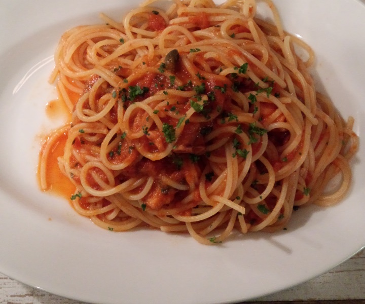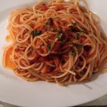 こちらはピザのお店のようですが、パスタランチもあり、その中からたこのトマトソースのパスタを注文しました。