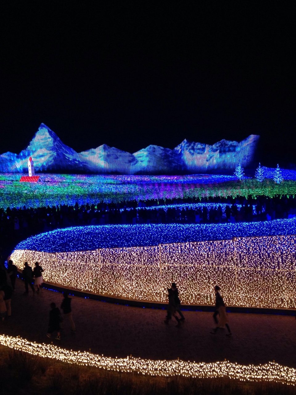 日本一のイルミネーションと聞いていましたが、確かに今まで見たイルミネーションの中では断トツでした。湖の周りを一周するようなコースになっていて、最後の方にある光のトンネルは出口が見えない程長く、ハイジのイルミネーションはとても壮大で見応え充分でした。