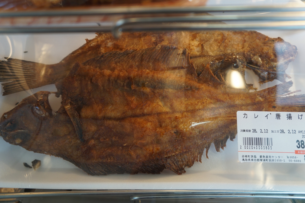 物産館ことうらは、道の駅のような感じの施設。バイパス道路沿いにあって、目立っていたので寄ってみました。近くに漁港もあるのでしょうか。新鮮な海産物の売り場がかなり充実していて、これはすごい。見事なカレイのフライをお土産にしました。