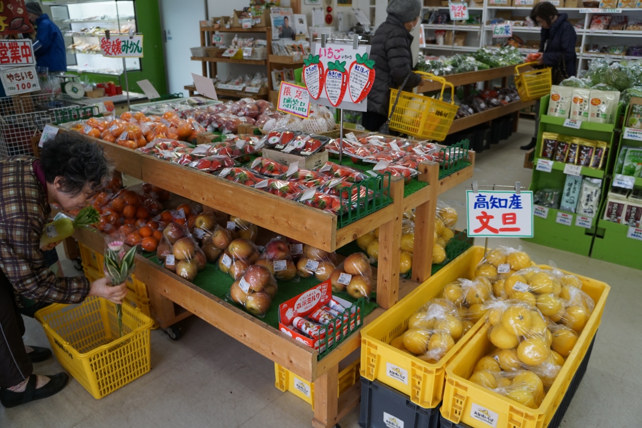 大栄と言えばスイカをイメージしてしまいますが、このシーズンなので、それはなし。一方で、いちごや高知の文旦が置いてあったのは、ちょっと驚き。この時期だと高地では文旦があちこちで大量売りされていて、おいしいんですよね。ただ、知らない人だとその価値は分からない。難しいところかもしれません。