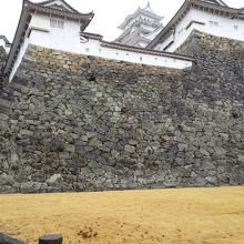 姫路城の扇の勾配。これは、開いた扇の曲線に似ていることから扇の勾配と呼ばれるそうです。上に行くほど反り返り、敵に石垣をよじ登らせないための工夫でもあったそうです。人力でここまでの石垣を作るなんて、本当ビックリです。