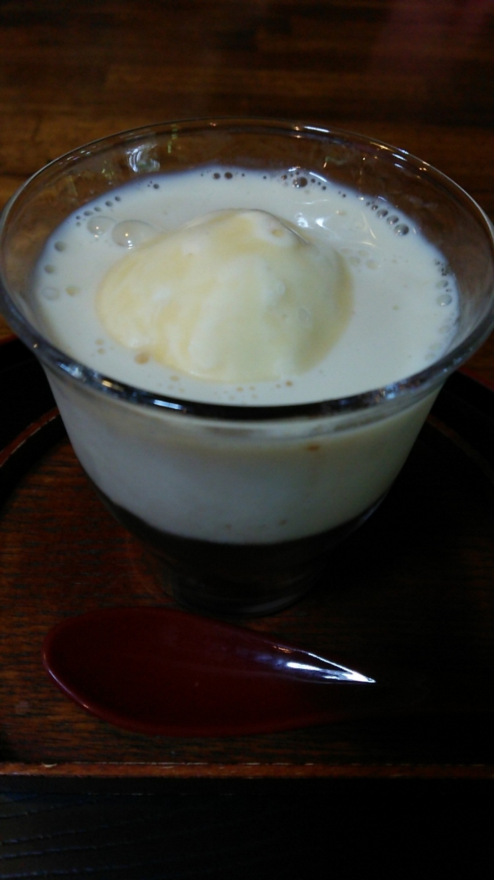 人気メニューの、ジューシーは流石に売り切れていましたが、その分デザートを頼みました。豆乳を使ったデザート、甘すぎずなかなか美味でした。沖縄ぜんざいの豆乳版アイスのせ、と言えばいいのでしょうか?豆乳とマメってこんなにあうんだ!とビックリしました。小さいサイズもあるので、おそばの後にオススメです。
