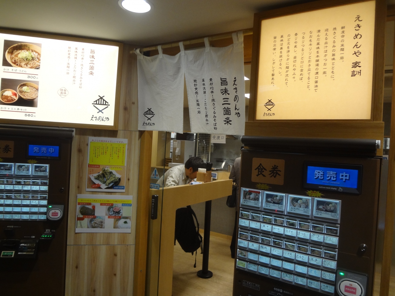 京急品川駅下りホームにある立ち食いそばのお店です。久しぶりに訪れたらリニューアルしたのか、きれいになってました。加えて「えきめんや家訓」とか「えきめんや旨味三箇条」とか、やたらと宣伝していました。かけそばも300円と以前より値上がってました。店内は確かにきれいになっていましたが。でもそばの味は、ん〜そんなに変わってないかなという印象です。そんなえきめんやですが、便利なことには変わらないので、また機会があったら利用したいと思います。