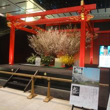 羽田空港国際線ターミナル4階。江戸舞台に桜が展示してありました。この桜は山形県の啓翁桜。どうやら本物のようです。他にも江戸小路にも。日本を代表する花だし、時期的にも桜の季節だからということでしょうか。確かにきれいでしたが、ちょっとやりすぎなようにも感じてしまいました。江戸舞台の案内版には英語の他、中国語と韓国語の上記がありました。