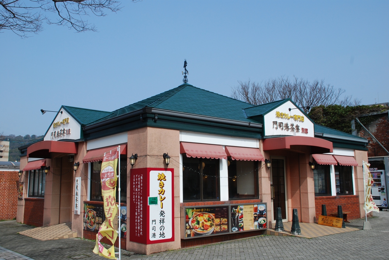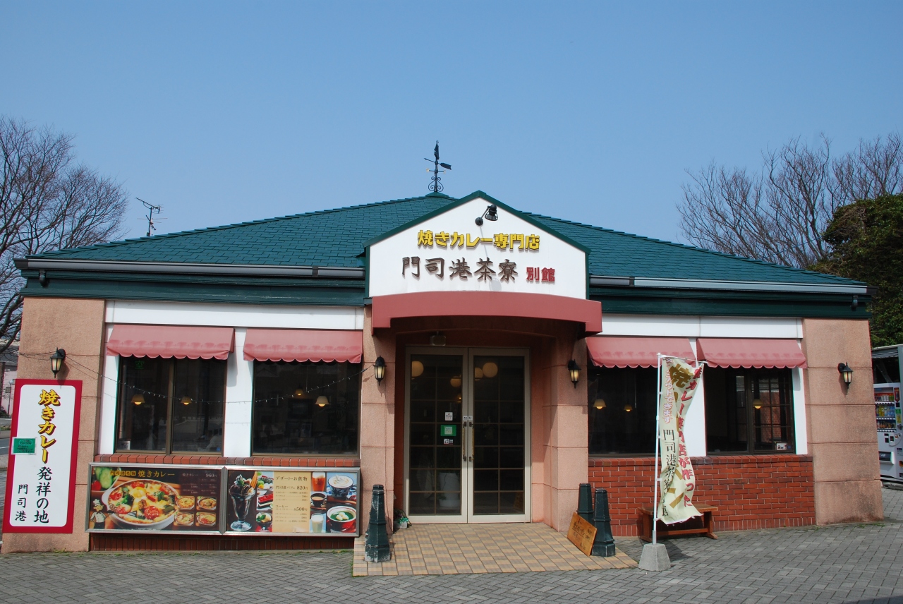 門司港レトロエリアを散策後、31階にレトロ展望室のある高層マンション「レトロハイマート」のすぐ横でレンタサイクルを借りました。そのレンタサイクル店の目の前にポツンと一軒だけ焼きカレーの専門店があったので、こちらでランチを食べる事にしました。店名は門司港茶寮ですがこちらは別館で、本館の方は門司港駅前のファミリーマートのすぐ裏側にありました。