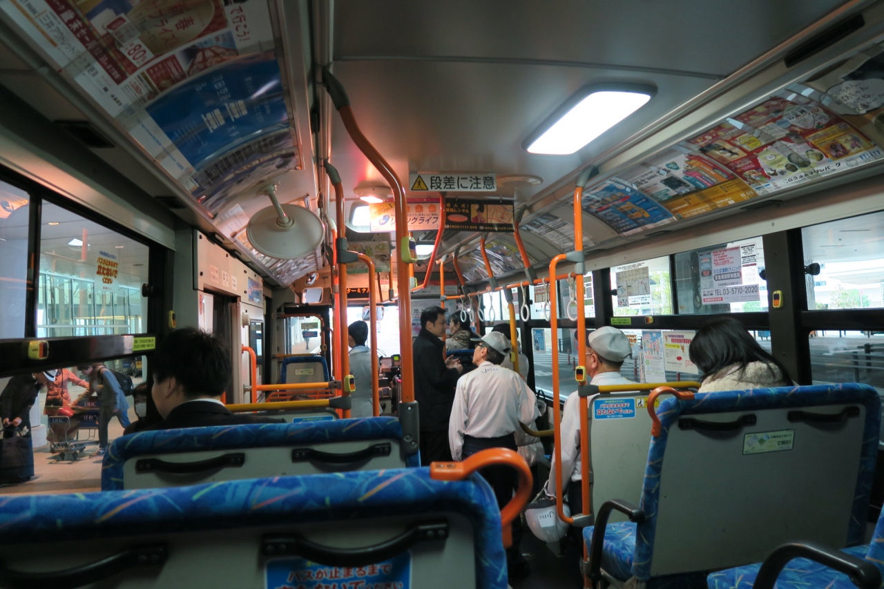 ごく普通のバスだが、荷物を載せやすいようにバスの車体自体が下がるタイプ。