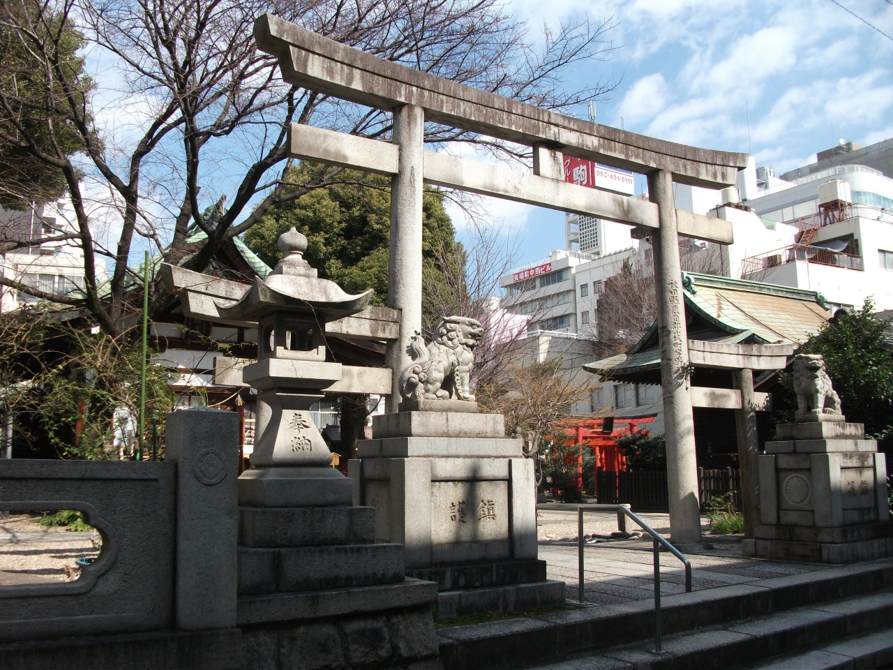三輪鳥居は二本の柱の外側にそれぞれ小型の鳥居がくっついたような形をしています。つまり大小の鳥居が三つ並んでいるようなイメージです。それを八の字型にくぐるとご利益があるそうです。次のうさぎですが、当神社のご祭神は大物主の命(=大国主命)なのでその縁でうさぎかな?三つめの矢場は境内に尾張藩の矢場があったことから目標(良縁)を射抜くということのようです。この神社の御朱印はうさぎが矢を射る姿のスタンプが押されます。