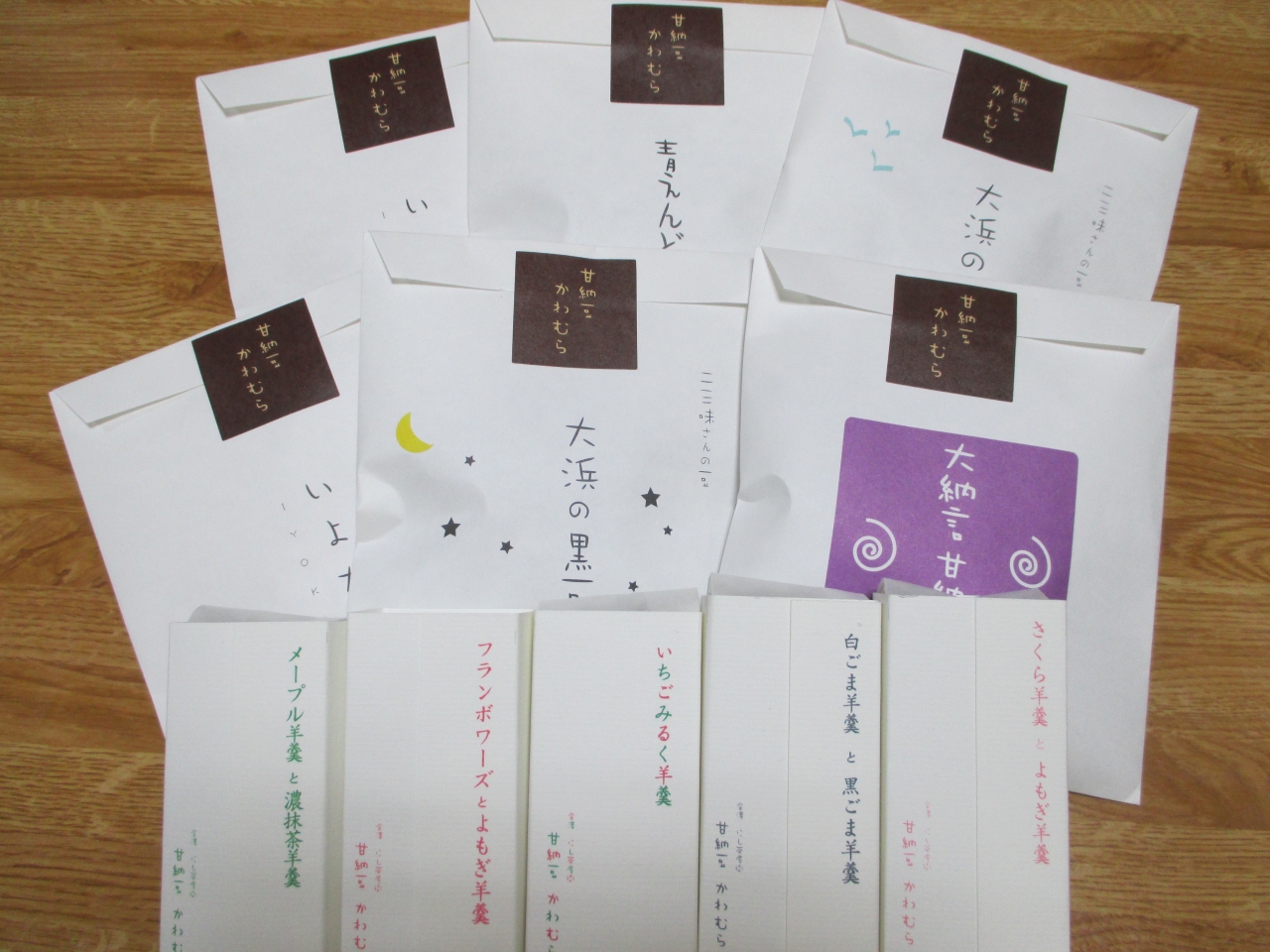 私がもとめたのは「白ごまと黒ごま」、「フランボワーズとよもぎ」、「メープルと濃茶」、「いちごみるく」、「さくらとよもぎ」です。