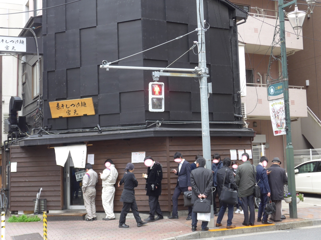 持って来いのバランスです。つけ汁の中には豚角煮の様なブロック(チャーシューの切り身?)が3〜4個と玉葱の刻みが入っています。店名にありますように煮干しの出汁がたっぷり効いていて風味もあります。残ったつけ汁にカウンターの上においている和スープを少し入れレンゲで頂きました。仕上げにはよいかと思います。店内の滞在時間は延べ時間で20分でした。外には既に多くのお客さんで行列が出来ていました。御馳走様でした。