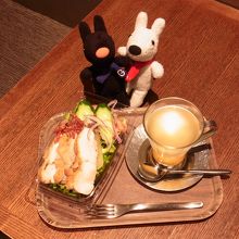 今回、チキンが入ったサラダと、柚子のジュースをオーダー。