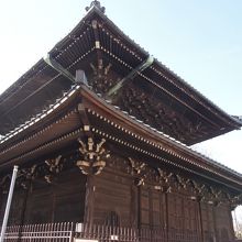 二重になった垂木と、よくわからないけれど細工の複雑な木造の飾りなどが立派で風格を感じます。