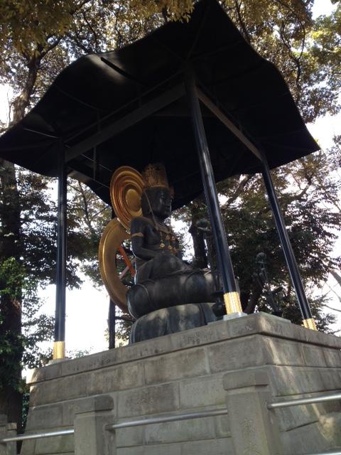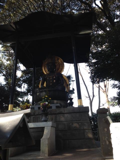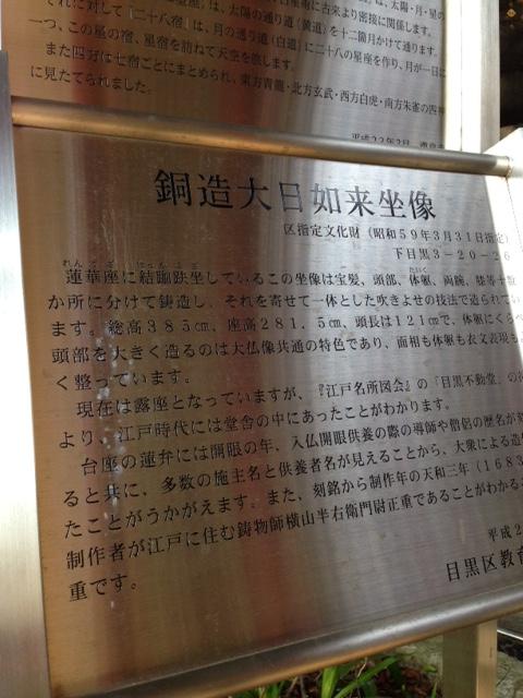 見所満載の天台宗の寺院です。が、意外と目立たないのが本堂の裏にある大日如来像です(目黒区指定の有形文化財です)。17世紀後半の作で、とても大きく厳かですが、鎮座しているご様子は、柔らかさも感じられます。