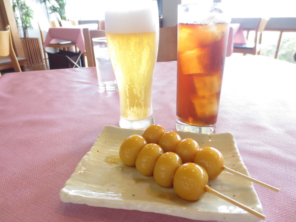軽食に私はパンケーキ。夫はビールとおでん、お団子も美味しそうだったので注文しました。あまり和菓子を食べないので、久しぶりに食べたみたらし団子、美味しかったです。