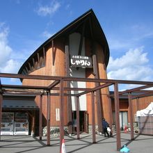 新潟方面から海岸に沿って山形県に入ってしばらくしたところにある“道の駅あつみ”にある物産館です。舟形のユニークな物産館の館内には山形のお菓子や地酒、温海の海産物や農産物、加工品などがたくさん販売されています。建物の裏側には海に向かって散策路も整備されていて磯遊びもできます。物産館の隣には24時間利用できる畳敷きの休憩室もあるので、お土産を買ったり、ゆっくりと一休みするのにいいところです。