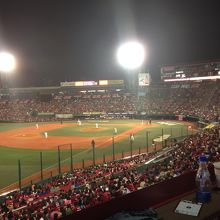 JR仙台駅から東に伸びるイーグルロードの突き当たりにある、東北楽天ゴールデンイーグルスのホームスタジアムです。