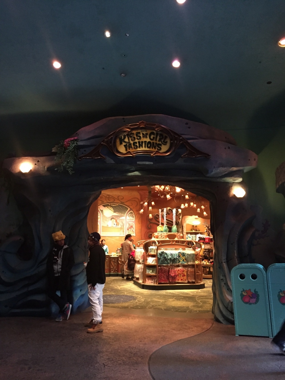 以前はすごくアリエルだらけでしたが、今はそんな事はありませんでした。ここではベビーやキッズ向けの商品が多く置かれています。キャラクターの被り物も、種類は少ないですがここにはキッズサイズがあります。ダッフィー関係はキーホルダー位でした。