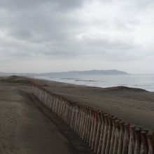 房総フラワーライン沿いにある海岸です。砂飛散注意の標識が結構あり、何んでかなと思っていましたが、やっとその理由が判りました。砂浜が砂丘のように結構隆起しており、海風で飛散するのでしょう。駐車場は特にないようでしたが、砂浜には登ってみてください。