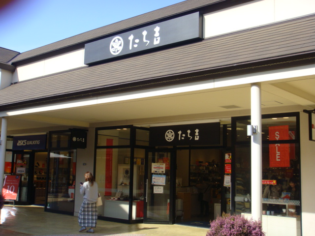 最近入間や南大沢などのアウトレットパークでよく見かけるたち吉です。店内にはお茶碗、お椀、湯のみなどの陶器が販売されています。このようなアウトレットでは市価の半額以下の大特価が置かれているので、それを見つけるのが楽しいですね。デザインが気に入ったので湯呑2つ購入(500円)しましが、街中のお店ではとても手に入らないと思います。