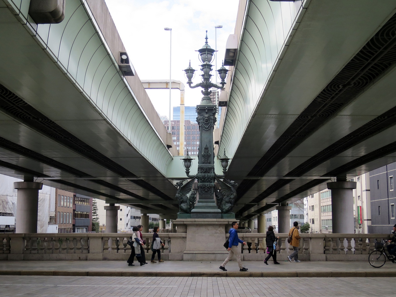 何と言ってもの本を代表する橋「日本橋」です。何度も大火で焼け落ち、現在の橋は19代目になりますが、それでも明治44年生まれの御高齢です(笑)。橋の揮毫は徳川幕府第15代将軍徳川慶喜公、橋の中央にある道路元標には元首相の佐藤栄作さんの文字、橋梁には手の込んだ獅子や麒麟の彫刻、橋の袂4か所には「元標識の広場」、「日本橋魚河岸記念碑」、「日本橋由来記の碑」といったモニュメントがありますし、現在クルーズ船乗り場となっている「滝の広場」は、かつて罪人の晒し場であった場所であることなど、美術的にも歴史的にも日本一見所の多い橋だと思います。前回の東京オリンピック時、橋の上に高速道路を通したことによって景観が崩れたことはずっと懸案になっていましたが、いよいよ高速道路の再整備計画が本格化してきたようで、日本橋に空が蘇るかもしれませんね、
