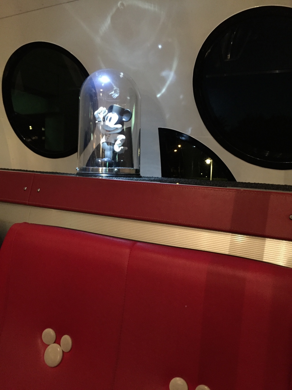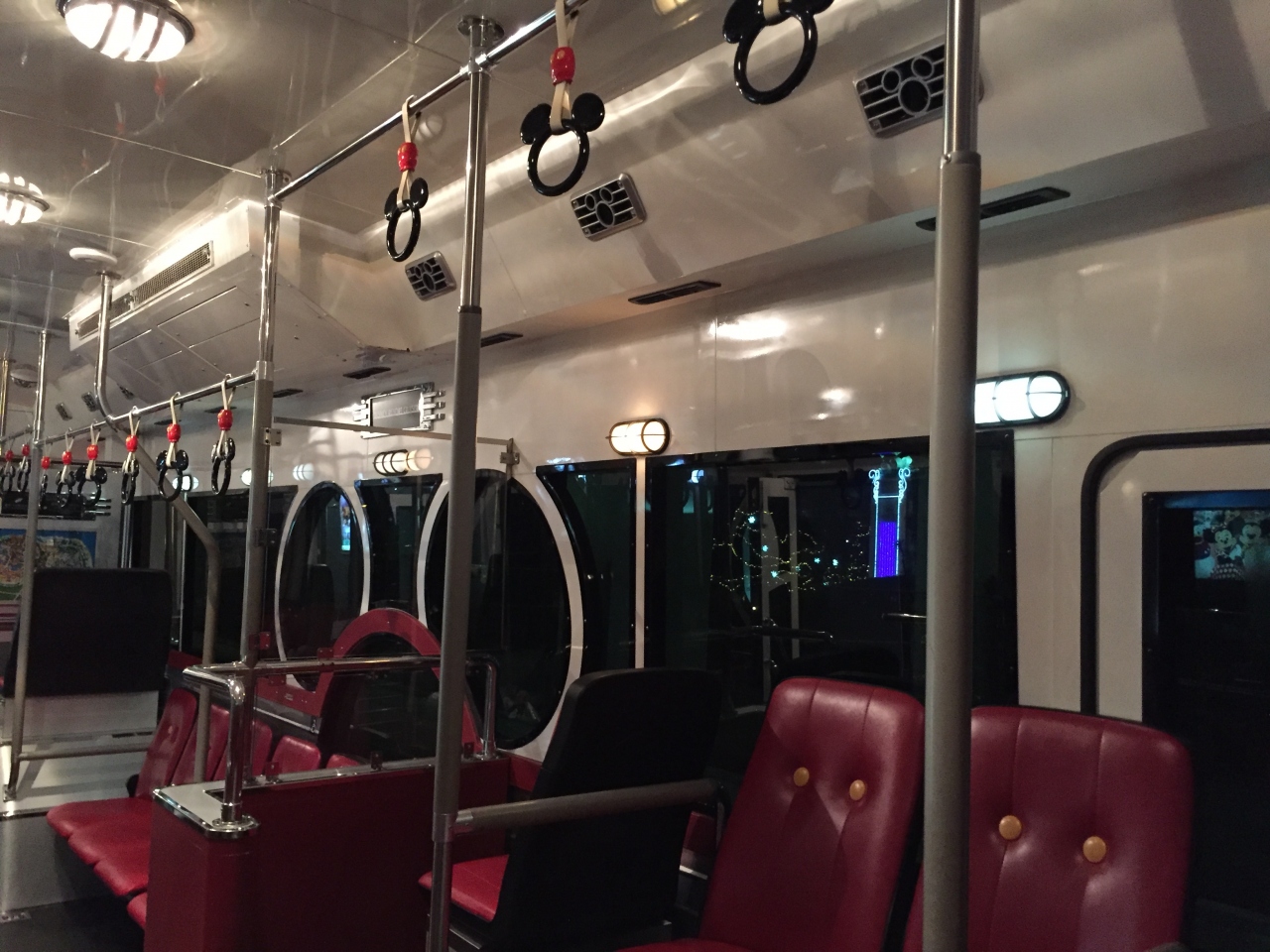 パークから戻るにはいったんモノレールのディズニーリゾートラインに乗って、さらにこのディズニーリゾートクルーザーというバスに乗らなければいけないので乗り換えが面倒でした。