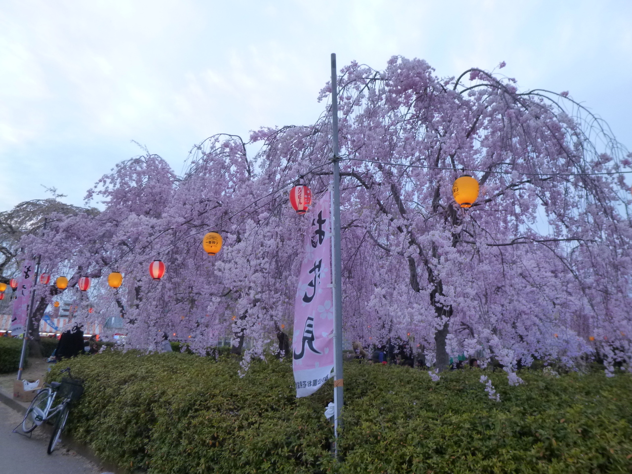 屋台もたくさん出ていて夜桜も楽しめるので、宴会している団体が多く賑やかでした。